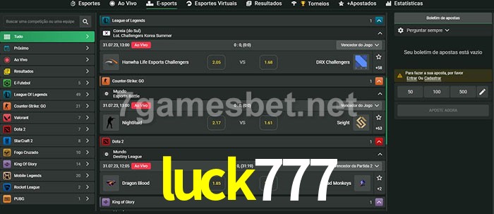 A aposta luck777 oferece aos jogadores a experiência mais conveniente de apostas em eSports!